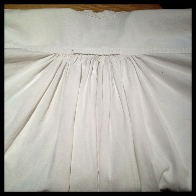 肩や、背中までギャザーたっぷりの一着