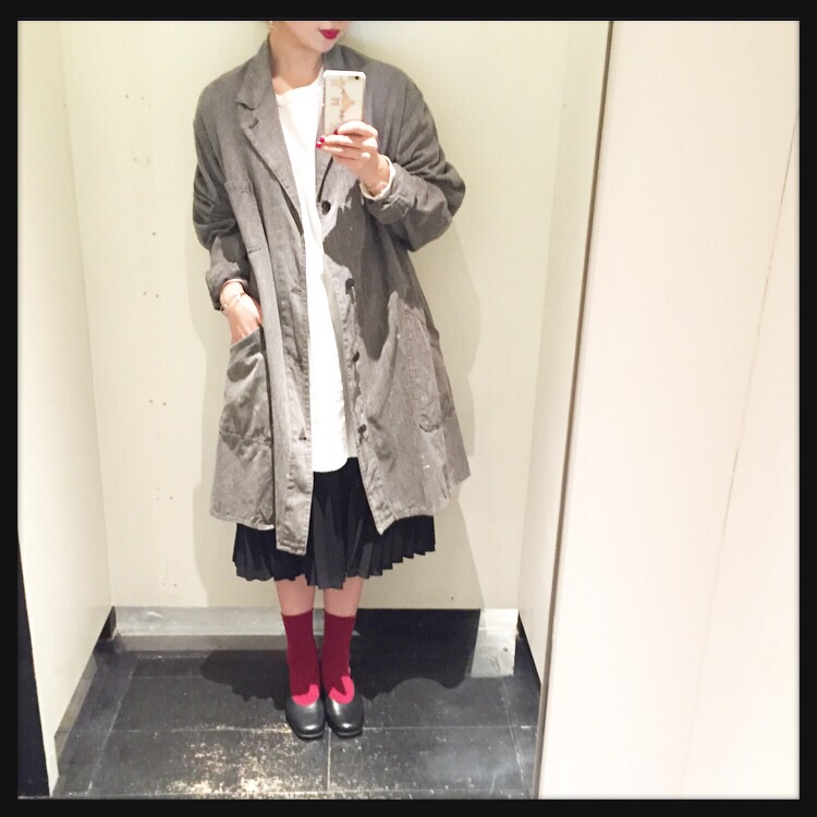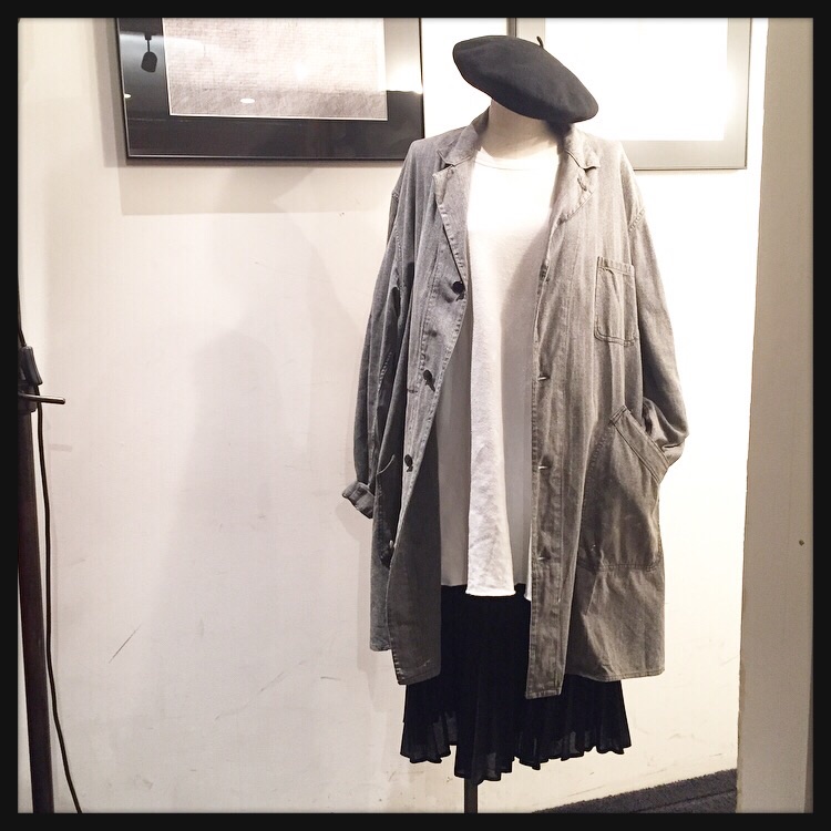 × Black pleated skirt ¥4,800(+tax) × 1950's Black chambray coat ¥14,800(+tax)