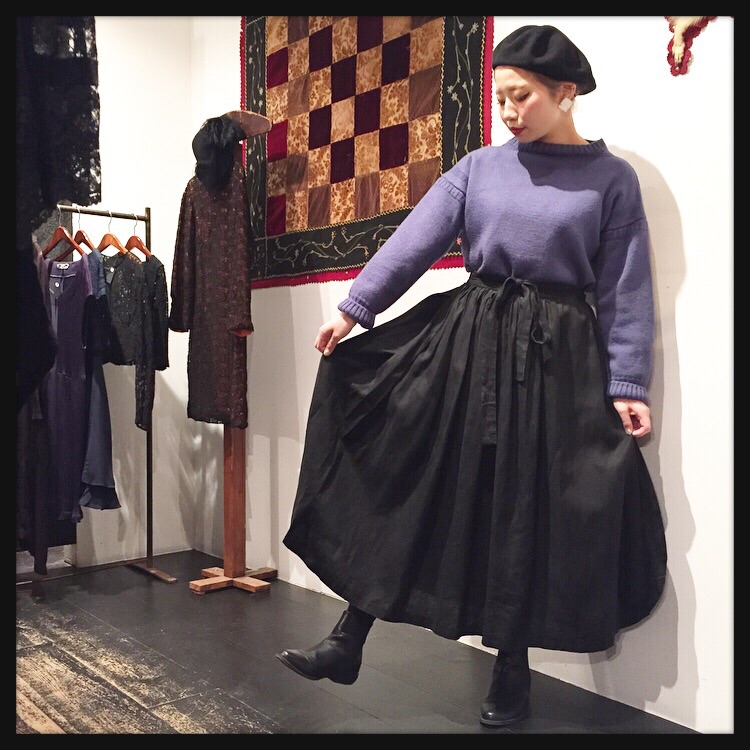 × Black pleated skirt ¥4,800(+tax) × 1950's Black chambray coat ¥14,800(+tax)