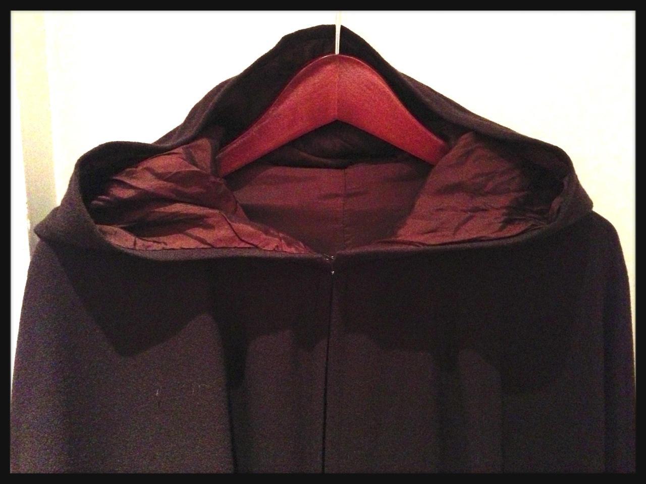 わたくし(157cm)で膝まですっぽりな丈感で雪の日にありがたいフード付きでございます