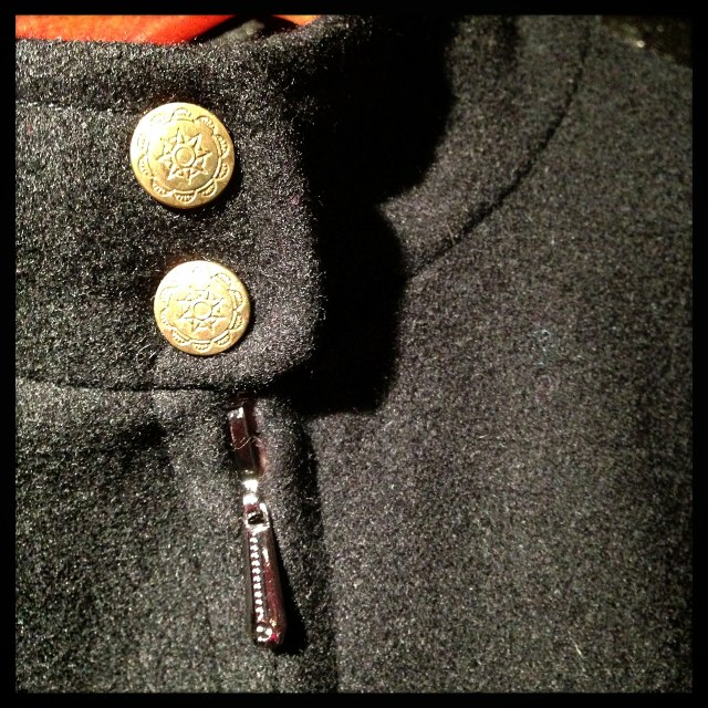 ファスナータイプで首元の金ボタンがポイント
