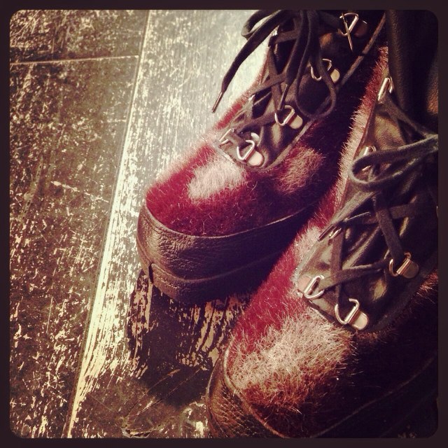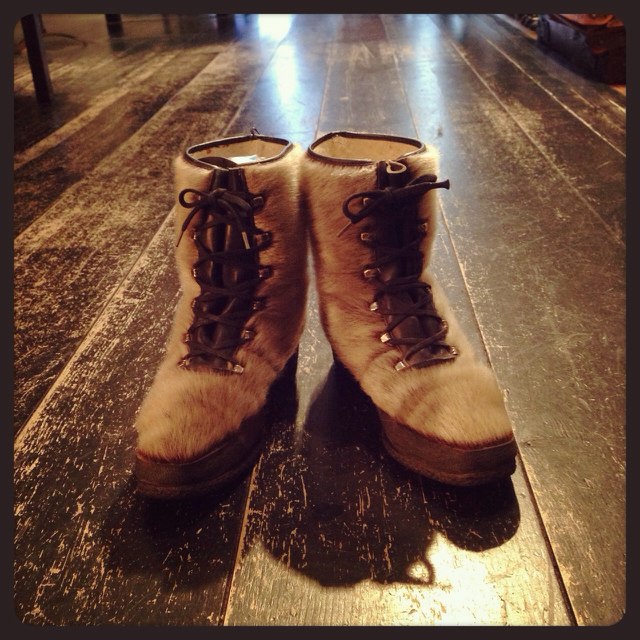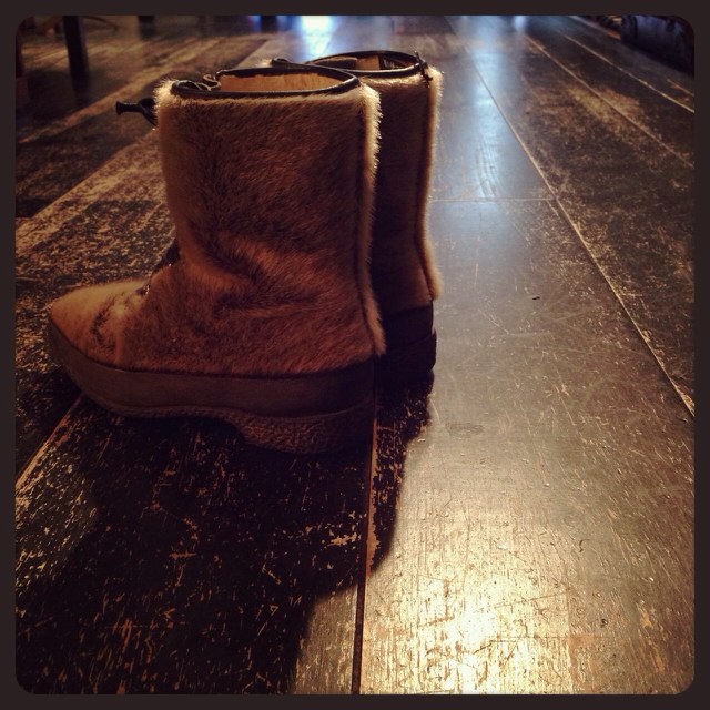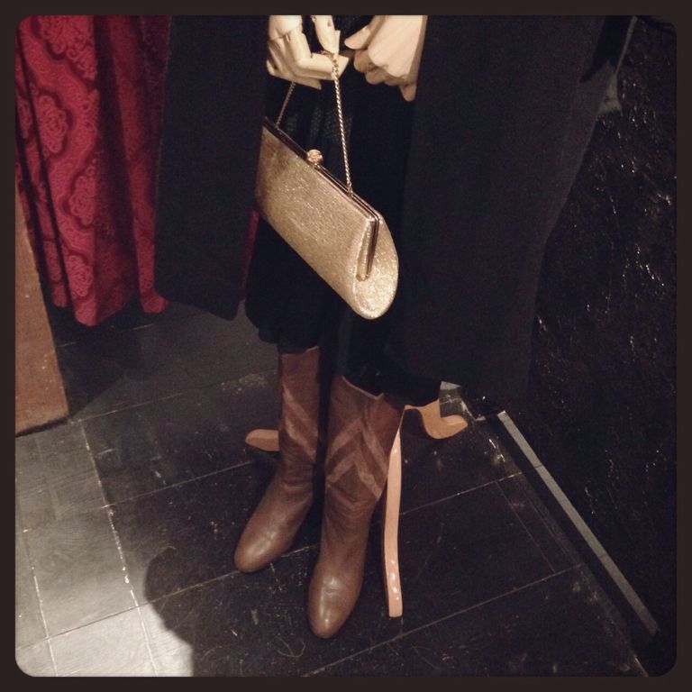 カシミヤのコートにロングブーツで