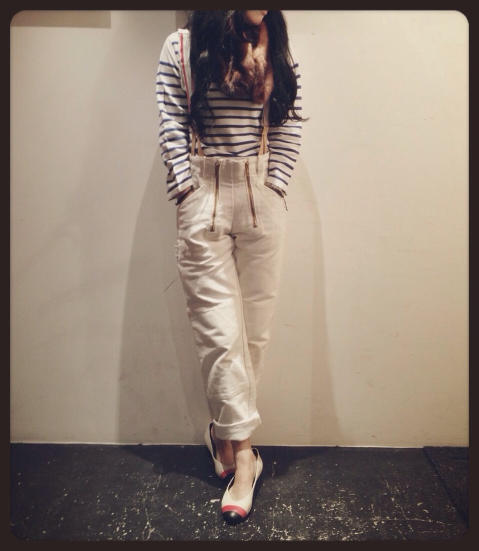 ベルトループも付いておりますがボタンサスペンダー用ボタンも付いておりますので是非吊って穿いて頂きたい一枚、