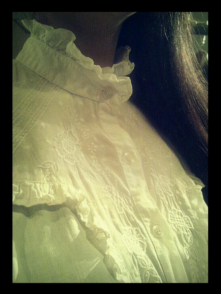 ブラウス、私はあまり着ないのですがお客様から私が着る可愛らしい感じの格好が見たいとのご要望を頂いたので着てみました