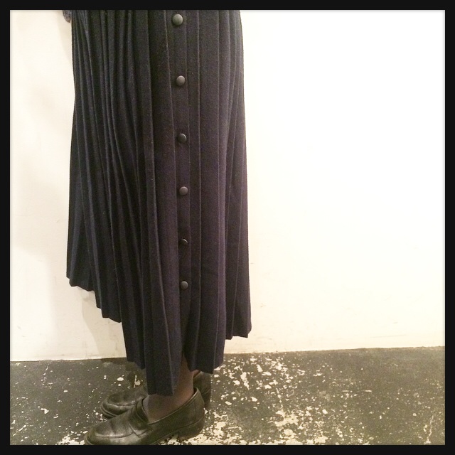 Navy pleats long skirt