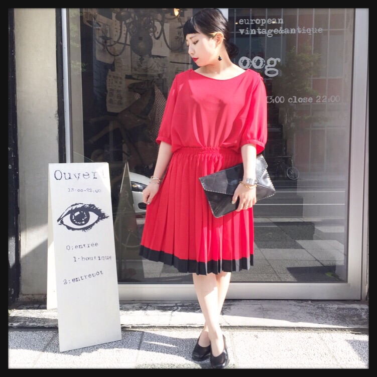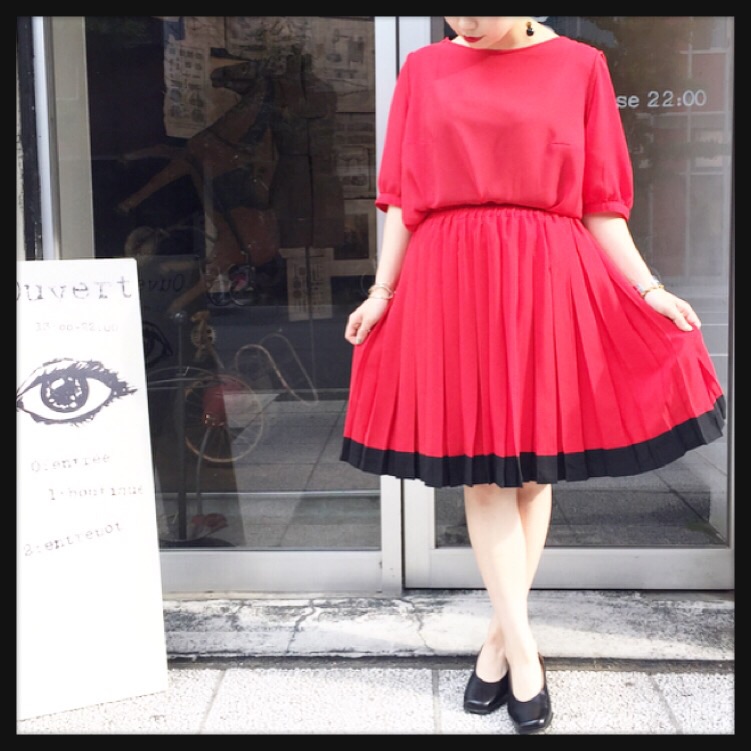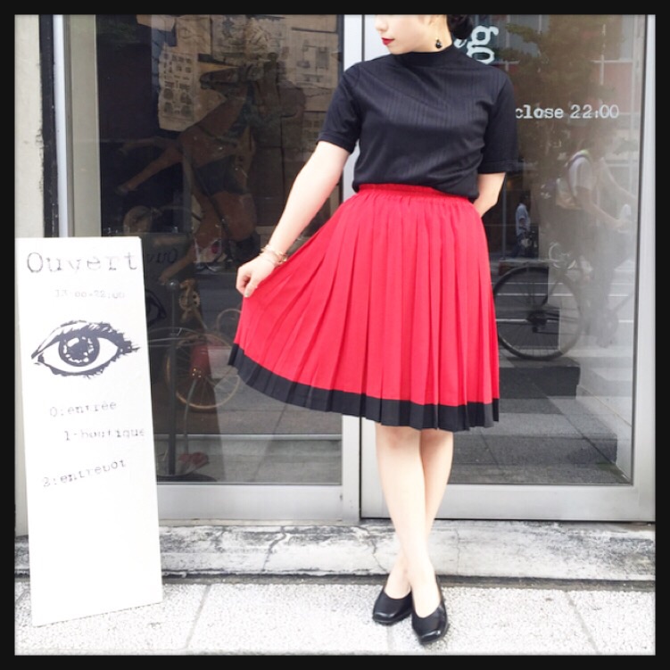 Today's recommend Red × Black pleated skirt