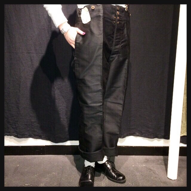 Deadstock 1930's〜1940's Black moleskin work pants ¥29,800(+tax) × Cotton thermal tops ¥2,800(+tax)