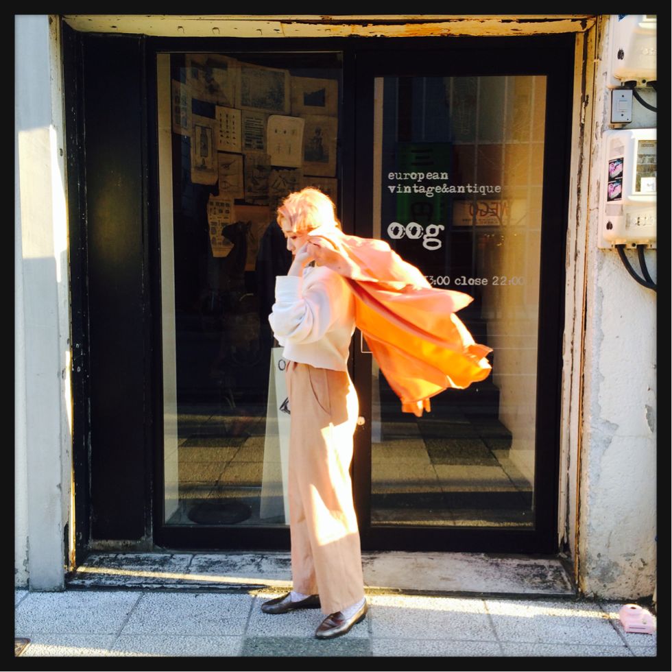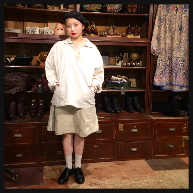 1940's〜1950's Silk blouse ¥7,800(+tax) × Ivory flare skirt ¥5,800(+tax)